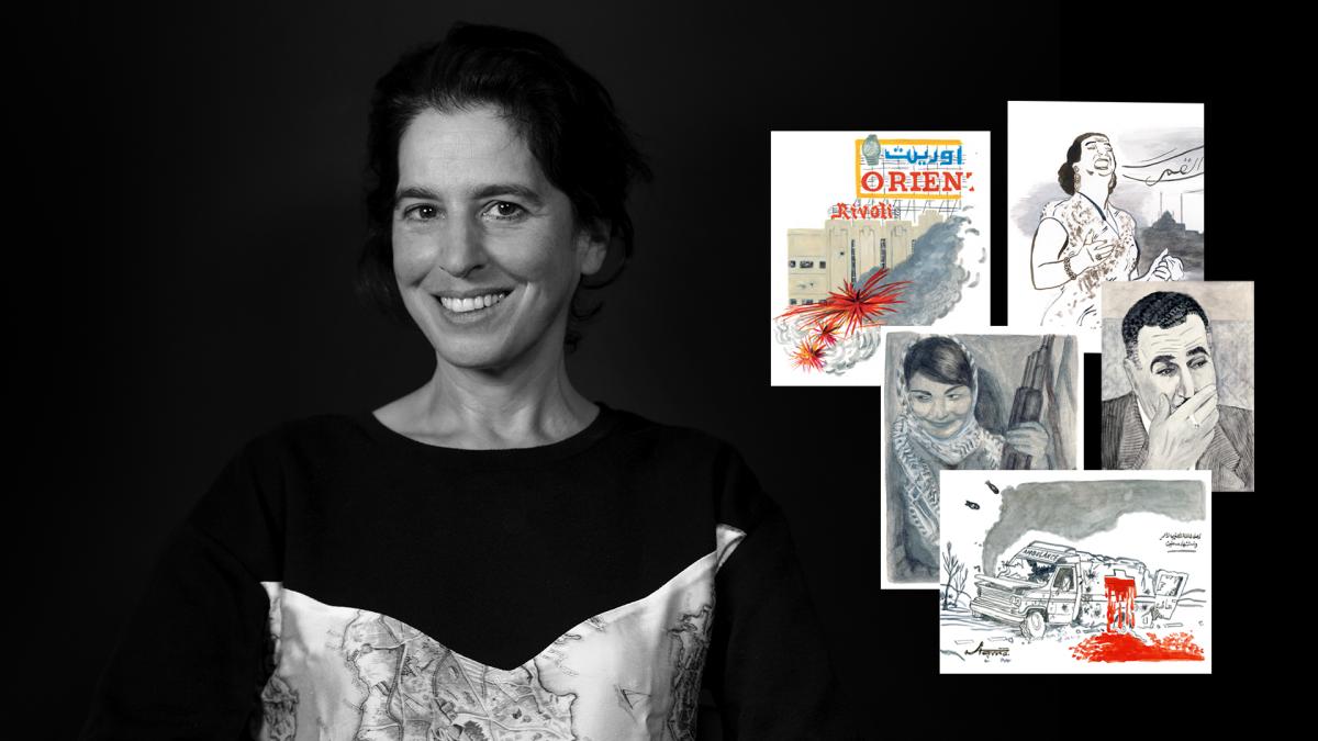 Qui saurait résumer l’œuvre de Lamia Ziadé ? Il suffit de lire les quatrièmes de couverture de ses récits illustrés pour jauger la gageure. Toutes commencent par « Dans ce livre, il y a » suivi d’une énumération vertigineuse, foisonnante, chaotique des « choses » qu’on y trouve : « des résistants tués, des révoltés abattus, des leaders assassinés, des enfants massacrés, des nationalistes pendus (…) il y a la plume, le mot, le verbe, l’éloquence, il y a le discours et le slogan, l’étendard et le combat, et il y a les attentats, des processions, des funérailles, des cortèges, des pleurs. Et aussi des colonnes, des chapiteaux, des gisants, des sarcophages. Des tombeaux phéniciens, des nécropoles romaines, des pyramides égyptiennes. Il y a des blasts d’explosion. Il y a du sang, des soupirs, des larmes, de la poussière, de la fumée, des bris de verre, des décombres, la désolation l’exil, l’agonie la tragédie, le deuil. Des couronnes, des fleurs, des rubans, des chants, des youyous. Il y a un siècle au Proche-Orient. »